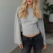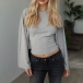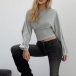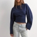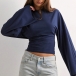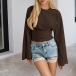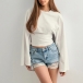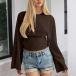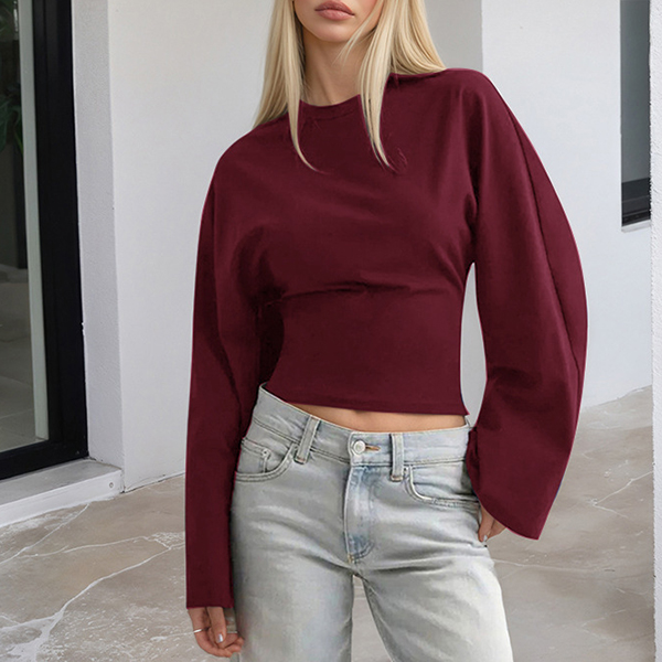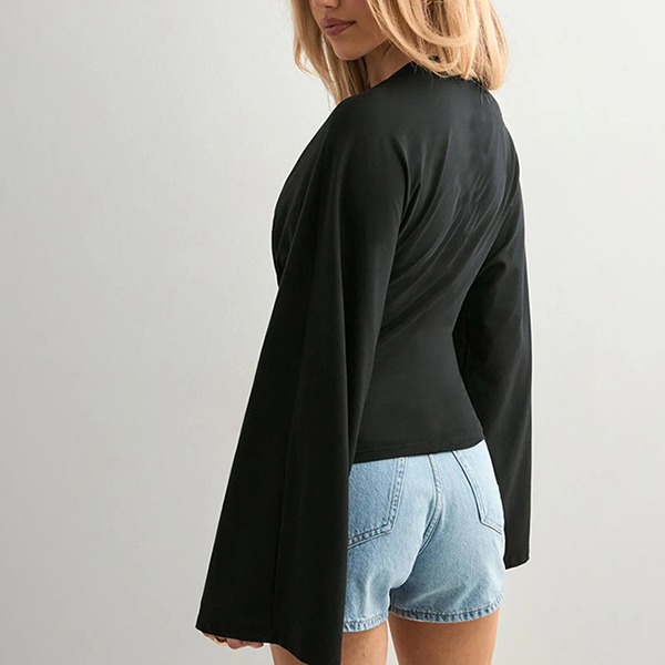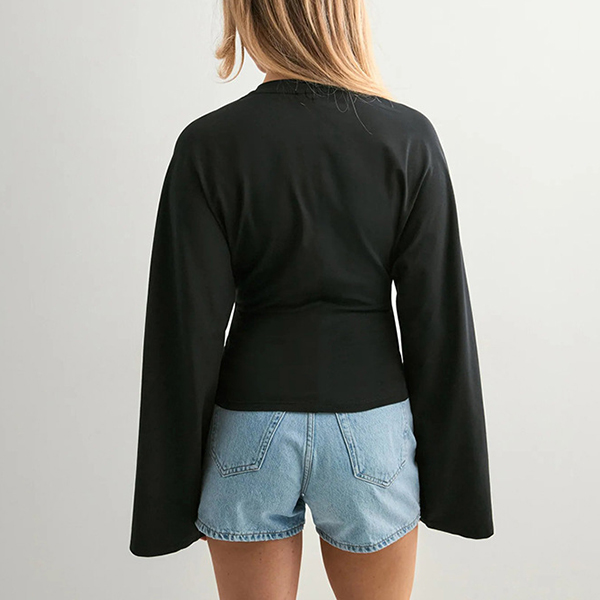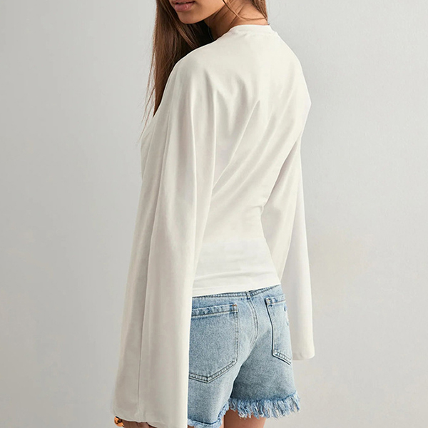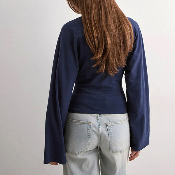 Rundhalsad, långärmad skjorta med trumpetärmar och slimmad passform