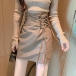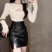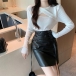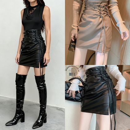 PU-läderkjol med hög midja och snörning i sidan – trendig modell