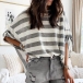 Fashion Dolman Sleeve Round Neck Loose Striped T-shirt