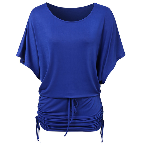 Fashion Dolman Sleeve Round Neck Side-drawstring Hem Dress