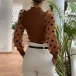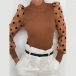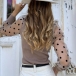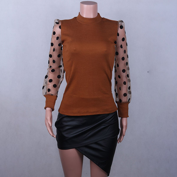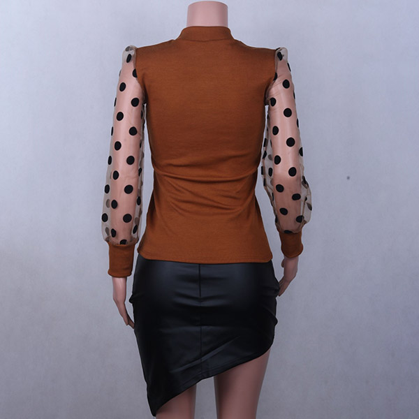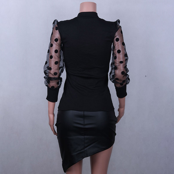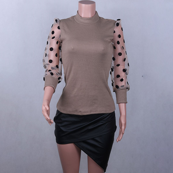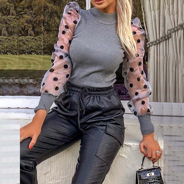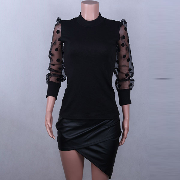 Only need one glance,you would be attracted by this chic and stylish top. The dots gauze spliced puff sleeve design makes this piece look so sexy and distinctive,while the fit silhouette design can showcase your perfect body-line. No matter matching with a shorts,skirt or jeans,you can look charming and fashionable enough!
