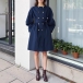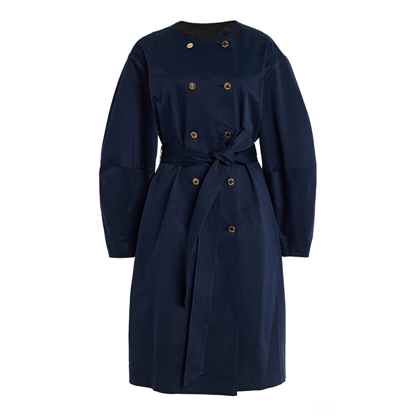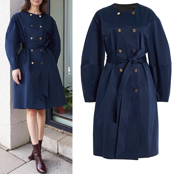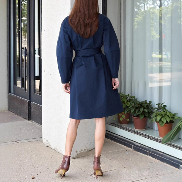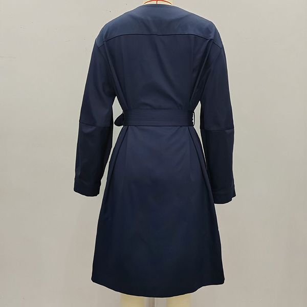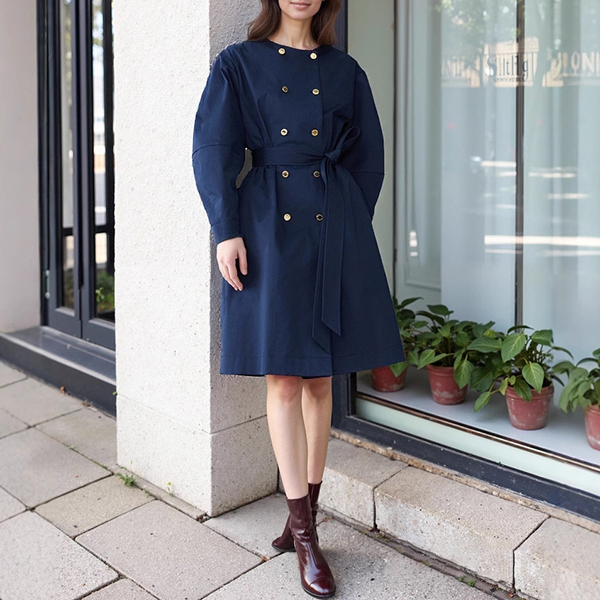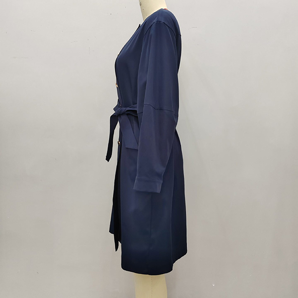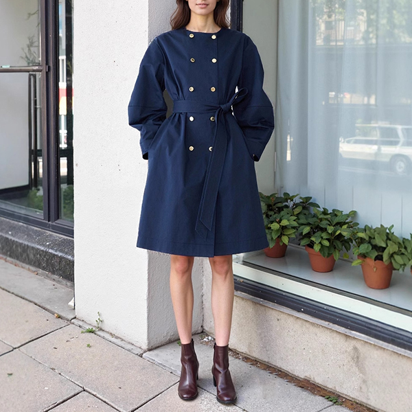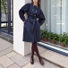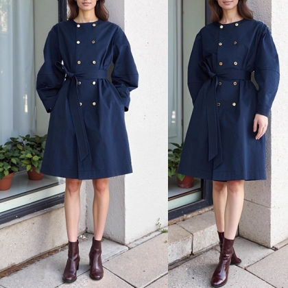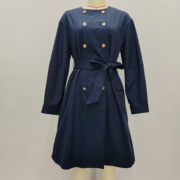 Trendig jacka med dubbelknäppning, rund halsringning, långa ärmar och knytband i midjan