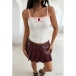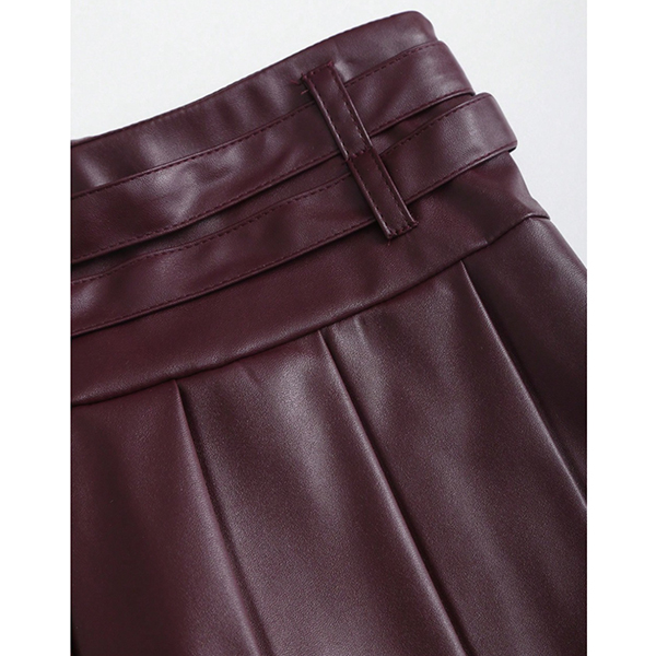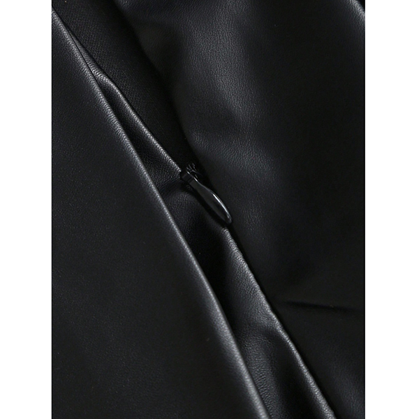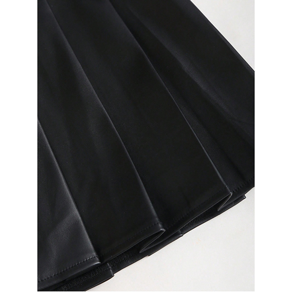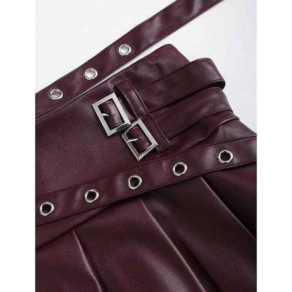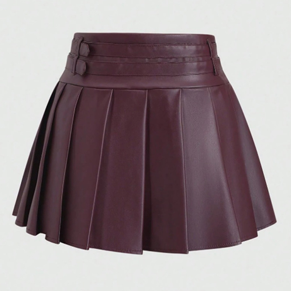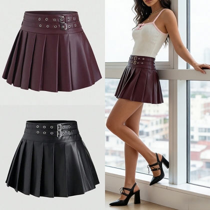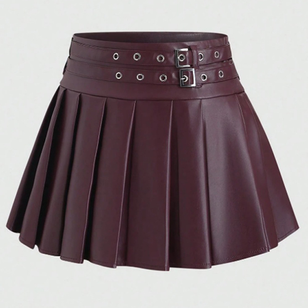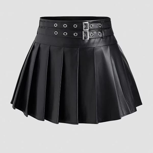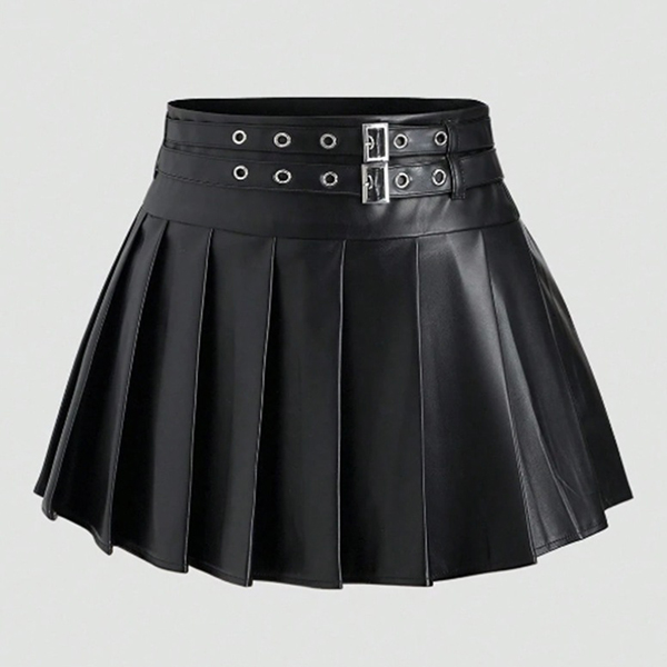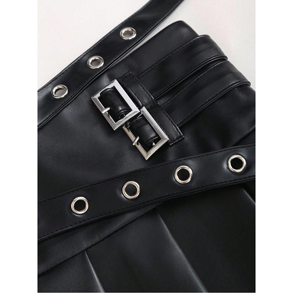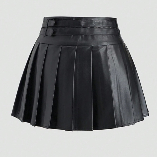 Modernt plisserad minikjol i konstläder med två spännen