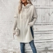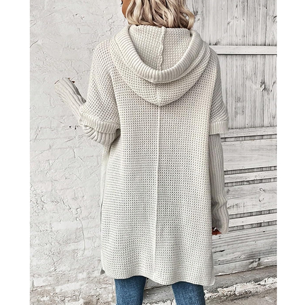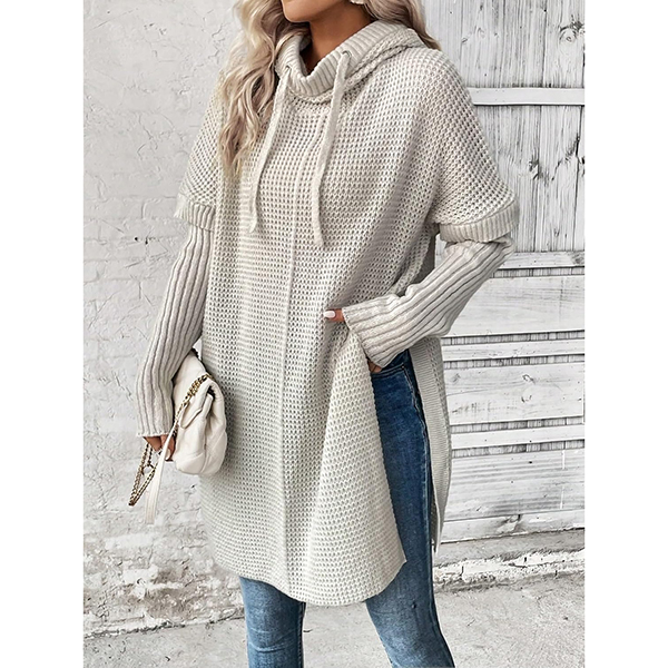 Stickad hoodie med justerbar dragsko, ribbad långärm och sidoslitsar