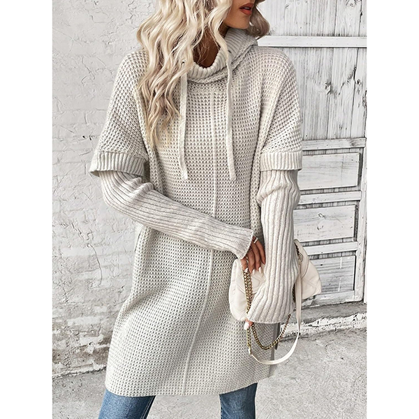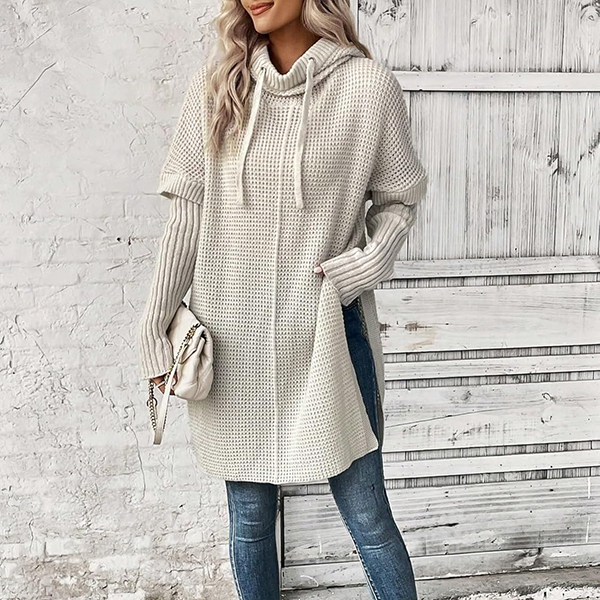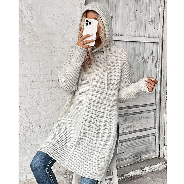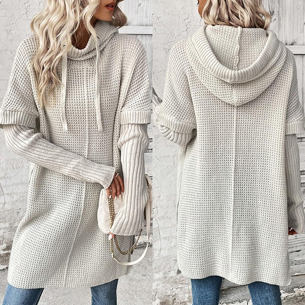 Upptäck ultimat komfort och modern elegans med vår långtröja i premiumstickad kvalitet. Den justerbara huvan med dragsko ger en sportig touch och extra värme under kyliga dagar, medan den ribbade strukturen längs ärmarna skapar visuellt djup och en lyxig känsla. Den smickrande, långa silhuetten kombineras med strategiskt placerade sidorslitsar för optimal rörelsefrihet – långt från vanliga, klumpiga tröjor. Bär den som klänning med höga stövlar och tights eller matcha med dina favoritjeans för en avslappnad weekendlook. Den mjuka, hållbara materialmixen är enkel att tvätta och behåller formen över tid, vilket gör denna tröja till ett mångsidigt och tidlöst tillskott i din garderob.