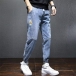 Midjejeans med dragsko Flera fickor Gamla tvättade herrjeans