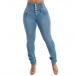 Stretchiga skinny jeans med hög midja, knappgylf och vintage-tvätt