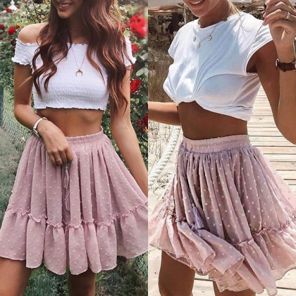 You can easily achieve for a fresh and sweet daily look with the help of this skirt. It comes with a sweet and youthful pink tone,finished with elastic waist and 3D dots spliced details,this skirt can offer you different fashion styles by teaming with different style tops.