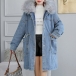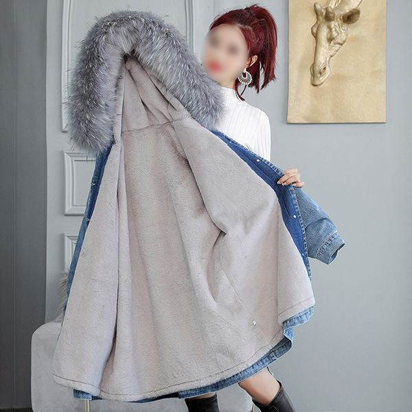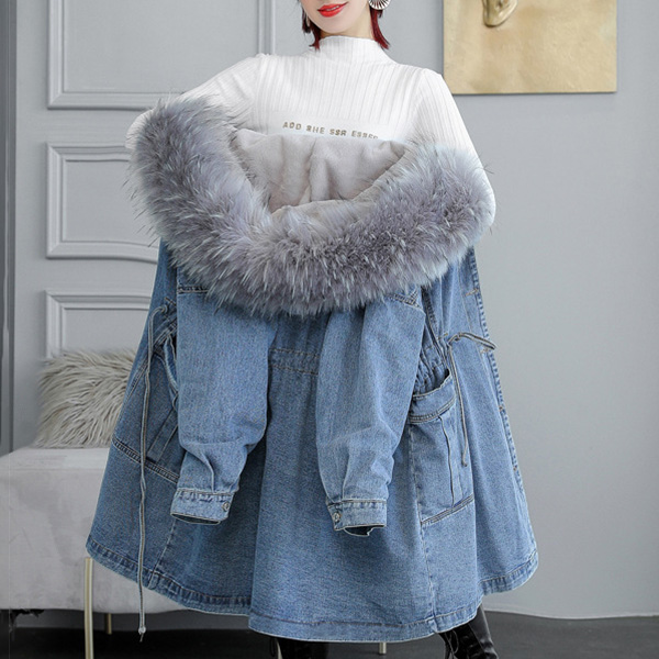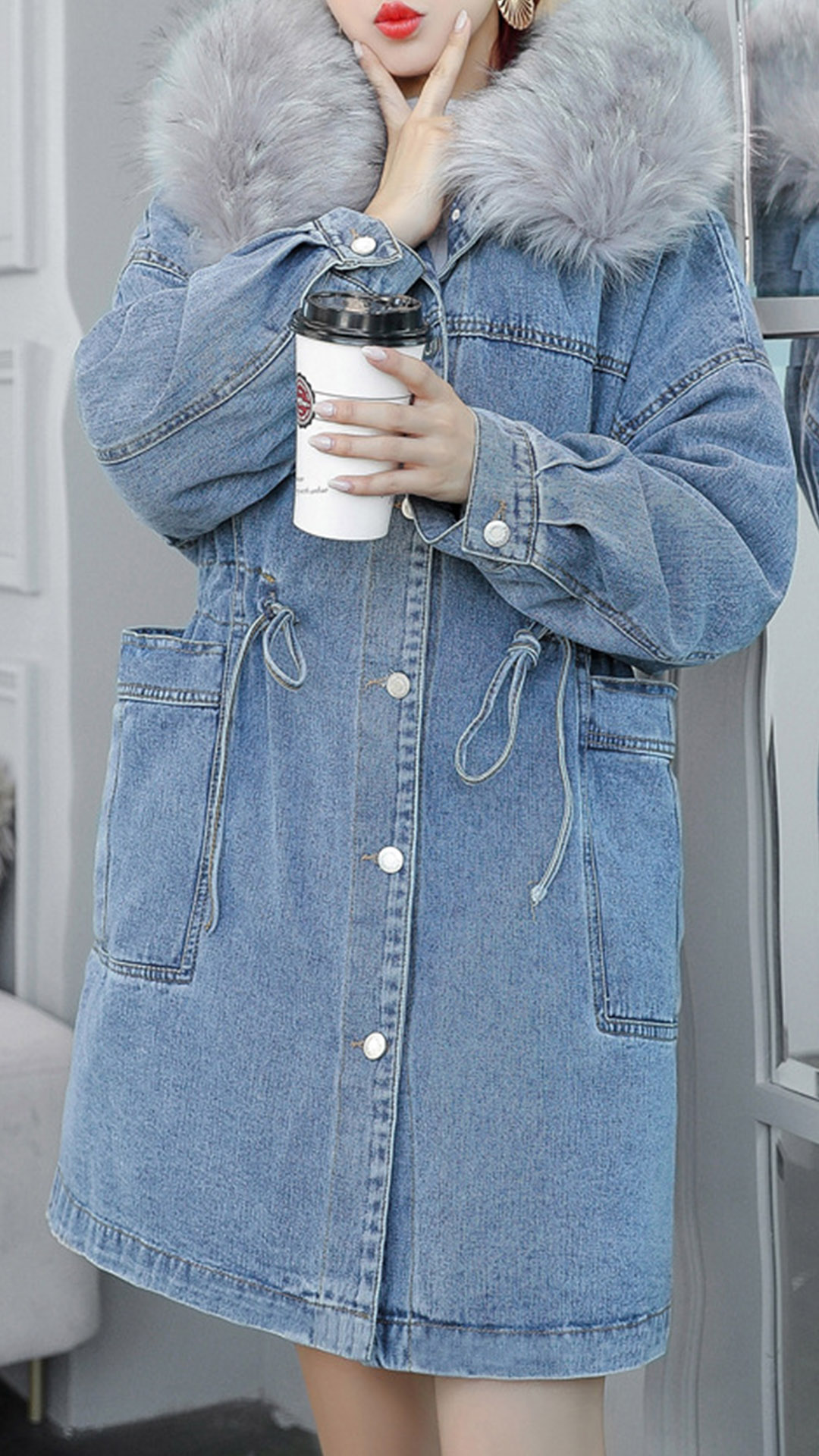 For these chilly days,this denim coat is worth to be a timeless wardrobe staple. The faux fur spliced hooded silhouette and plush lining design can give you a warm and comfortable day,while the drawstring waist design will help showcase your figure. You can have a wonderful winter with this warm coat.