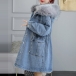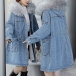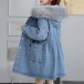 Fashion Faux Fur Spliced Hooded Drawstring Waist Denim Coat
