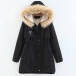 Fashion Faux Fur Spliced Hooded Plush Lining Drawstring Waist Padded Coat