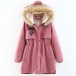 When the cold season hits,this padded coat is worth to be your timeless wardrobe staple. Solid color style,the faux fur spliced hooded silhouette and plush lining design can ensure you a warm and comfortable day,while the drawstring design at the waist part can help showcase your figure. So why not invite it to your winter wardrobe?