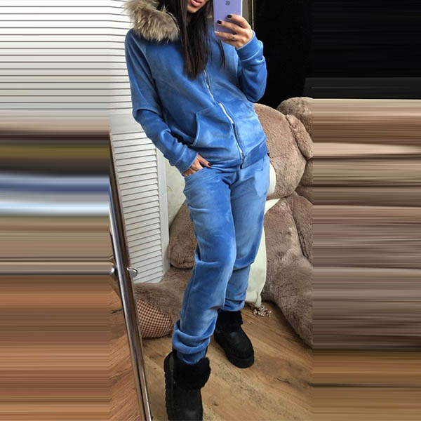 In these cold days,you can trust in this two-piece set to have a warm day while it maintains a casual,relaxed and stylish style. Solid color style,including a long sleeve faux fur spliced hooded sweatshirt coat and a pants,cozy yet stylish. It is perfect fit for your sports time and casual weekends.