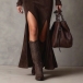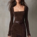 Titta på den här klänningen! Den moderna fyrkantiga halsringningen skapar en raffinerad och trendig silhuett. Det lyxiga fuskmockatyget faller vackert över kroppen och ger en exklusiv look och känsla. En hög slits ger en sensuell touch och underlättar rörelse, medan det medföljande bältet knyts i midjan för att framhäva dina kurvor. Komplettera looken med ankelboots eller klackar för en diskret elegans.