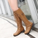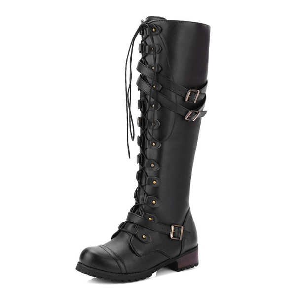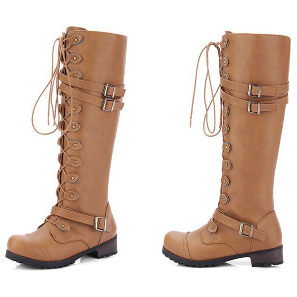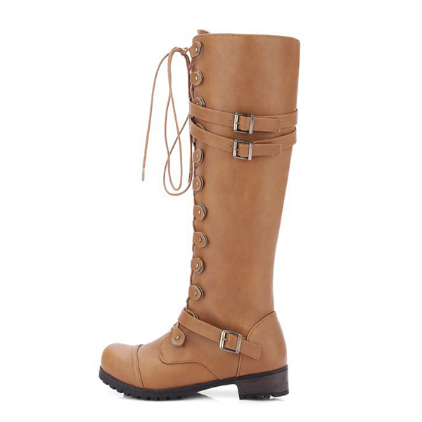Detta par riddarstövlar kan enkelt bli höjdpunkten i din övergripande klädsel. De har platt klack, rund tå och ett andningsbart foder som ger en bekväm känsla. Snörningsdetaljerna gör dem mer attraktiva. Fullända en snygg vardagslook med dessa stövlar.