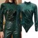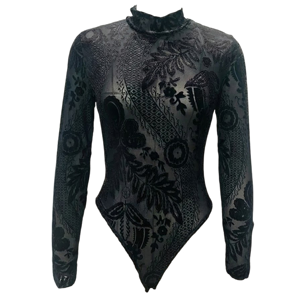 Denna romantiska bodysuit har en elegant, falsk halsringning med invecklade blombroderier och en lockande, halvtransparent konstruktion som ger en modern, feminin elegans. Kombinera med högmidjade byxor och fina accessoarer för en romantisk och sofistikerad look.