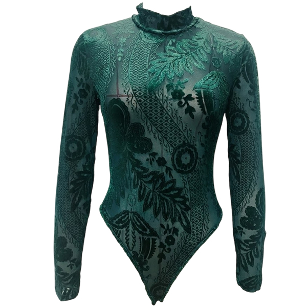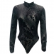 Långärmad body med broderade blommor och hög krage – trendig damtopp