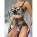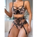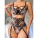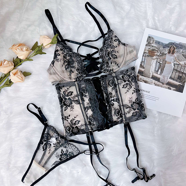 Trendigt tre-delat korsbands-set med blommig brodyr och matchande underklädesset