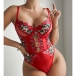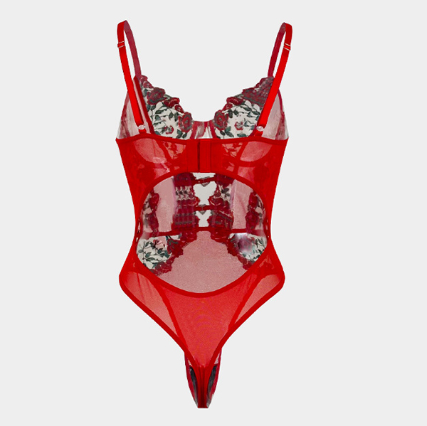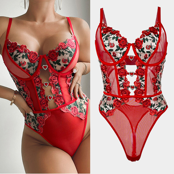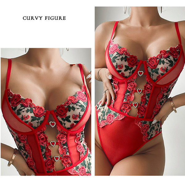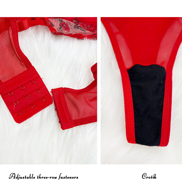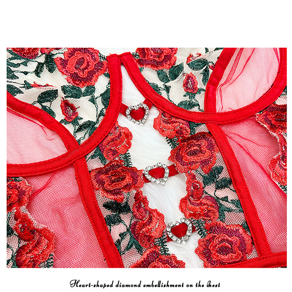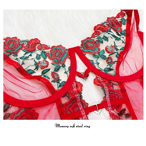 Damunderkläder rygglös design med blommigt broderi och hjärtformad ring