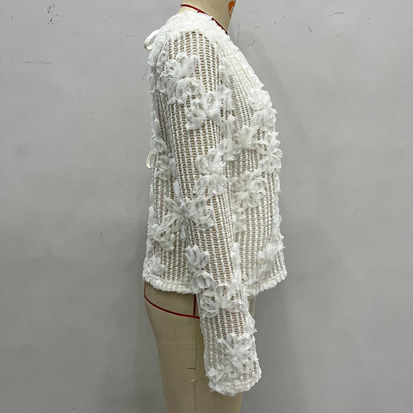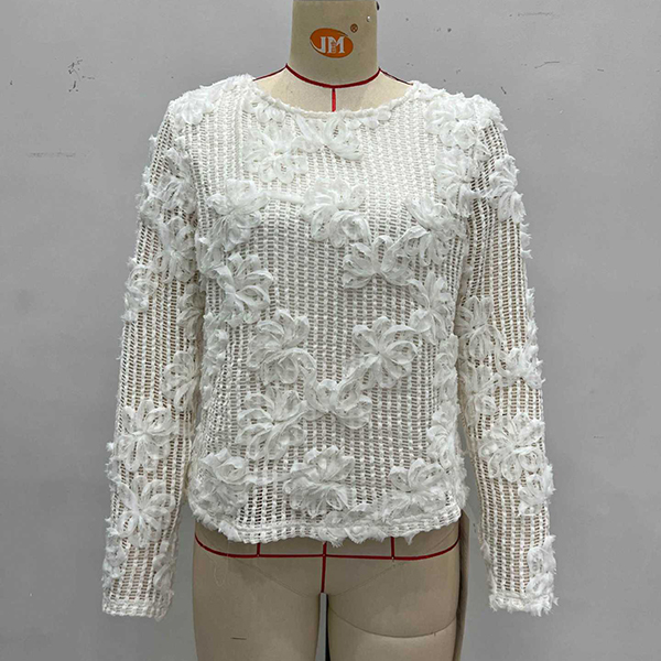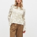 Jacquardstickad blus med intrikat blommönster – vävd design ger exklusiv känsla och håller formen perfekt. Tillverkad av mjuk, ekologisk bomull som andas och sitter skönt hela dagen. Utmärker sig från massproducerade plagg tack vare handfinishade detaljer vid krage och manschetter. Allsidig styling för både kontorsdagar och helgutflykter – kombinera med skräddarsydda byxor och kavaj för ett professionellt intryck eller med midikjol och ankelboots för en chic, romantisk look. Finns i säsongens trendiga nyanser: puderrosa, cremevit och lavendel. Ett tidlöst tillskott i din garderob som andas skandinavisk minimalism och elegans.