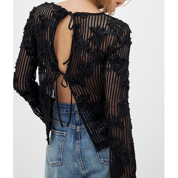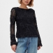 Stickad blommönstrad jacquardtröja med rund hals och långa ärmar