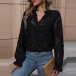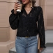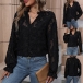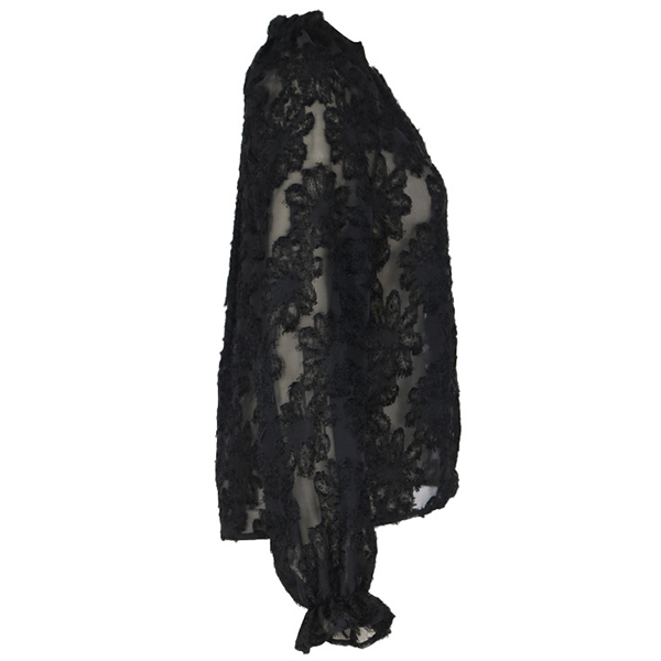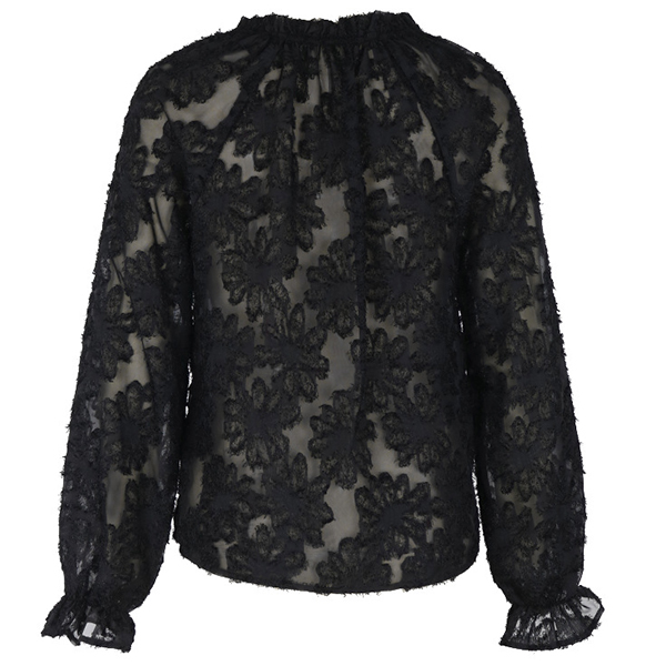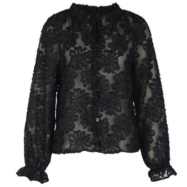 Detta är en stilig och feminin pjäs som kombinerar en blommig jacquarddesign med en V-ringning och långa ärmar för en moderiktig och mångsidig look. Kombinera denna skjorta med jeans eller byxor för en avslappnad och enkel look.