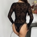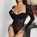 Romantisk spetsbody med blommönster, hjärtformad ringning och långa ärmar