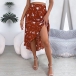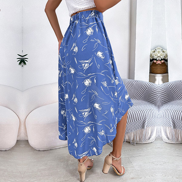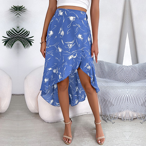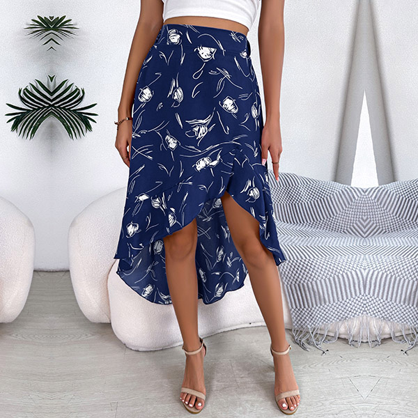 Fashion Floral Print Ruffle Irregular Hemline Skirt