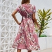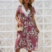 Blommig tryckt spets skarvad V-ringad kortärmad klänning