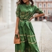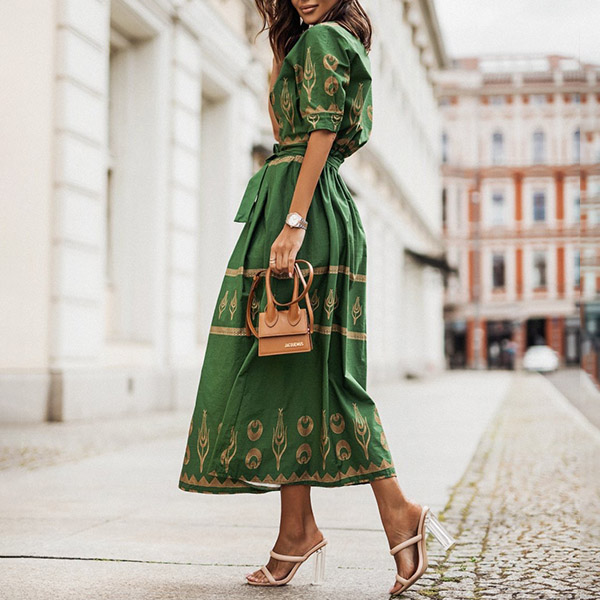 This pretty floral printed dress is perfect for any spring or summer event! It features a mock neck, elbow-length sleeves, and a self-tie waist for a flattering fit. The A-line skirt is perfect for twirling on the dance floor, and the pretty print is sure to turn heads. Color:Green,Black,Apricot, which one do you like?