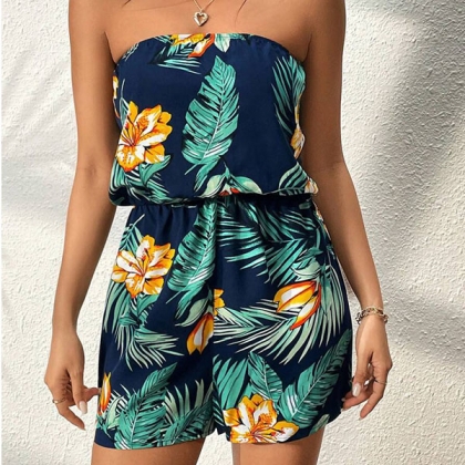 Detta är en chic och trendig romper som utstrålar charm och stil. Blommönstret lägger till en touch av nyckfullhet och femininitet till plagget, vilket skapar en fräsch och levande look som är perfekt för att lägga till lite färg till din outfit. Den axelbandslösa designen erbjuder en smickrande och feminin halsringning. Perfekt för en sommarpicknick, en stranddag eller en avslappnad utflykt.
