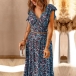 Fashion Floral Printed Two-piece Set Consist of V-neck Crop Top and Maxi Skirts
