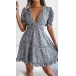 Modeblommig präglad V-ringad volang skiktad klänning