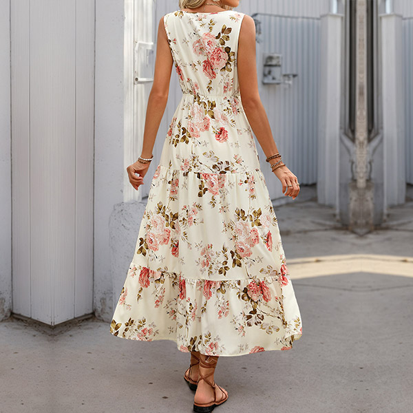 Blommig mönstrad ärmlös v-ringad lagerklänning