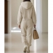 Trendig plyschjumpsuit med dragkedja framtill, rymliga lappfickor och långa ärmar