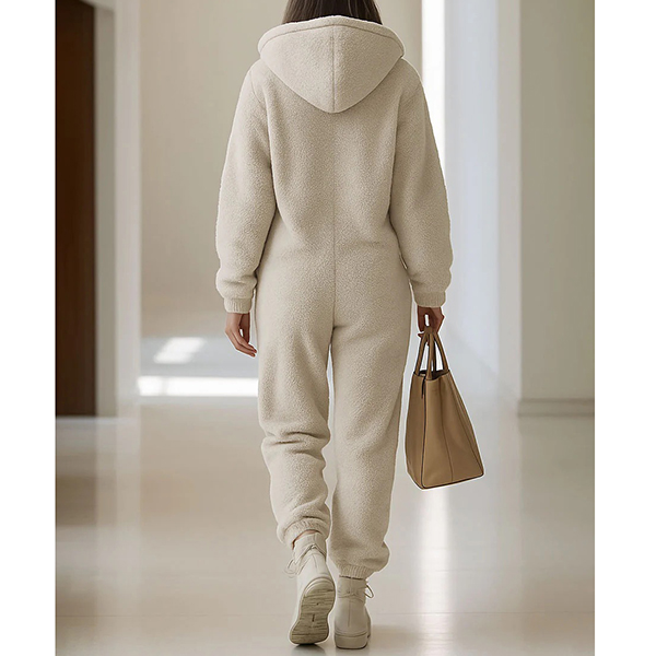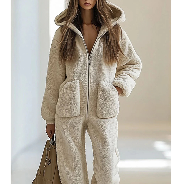 Upptäck vår exklusiva lyx-heldräkt i mjukaste premiumplysch – en oslagbar kombination av komfort och funktionell design. En slitstark tvåvägsdragkedja framtill ger enkel på- och avklädning, medan de dold-infällda fickorna erbjuder diskret förvaring utan att kompromissa med den rena silhuetten. Plyschens fylliga struktur omsluter kroppen i en silkeslen värme, och tack vare resår i midjan samt muddar vid ärmar och benslut följer dräkten varje rörelse med perfekt passform. Den minimalistiska, tidlösa designen gör heldräkten till en självklar favorit för både mysiga hemmakvällar och avslappnad helgstil – ett plagg som verkligen sticker ut i din loungewear-garderob.
