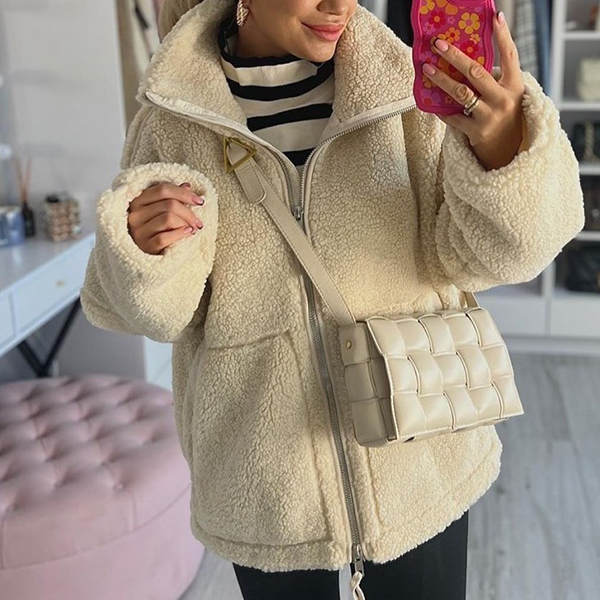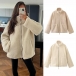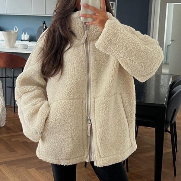 Trendig långärmad plyschjacka med dragkedja fram, ståkrage och rymliga fickor