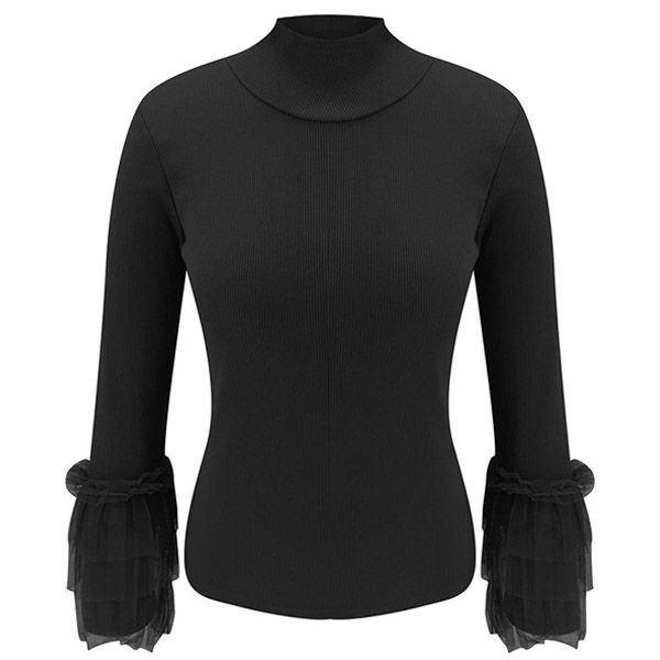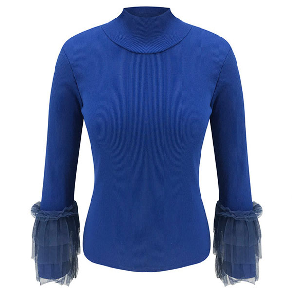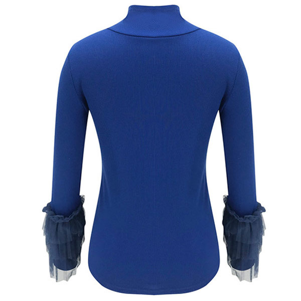 Only need one glance,you can be attracted by this chic and stylish top. Comes with a solid color,finished with long sleeve,mock neck and a fit silhouette design,this piece can showcase your perfect body-line. Then what makes this piece look so attractive? It owes to the gauze spliced details at the sleeve part. You can match it with your favourite bottom to finish a charming dress up.