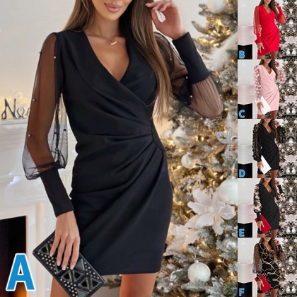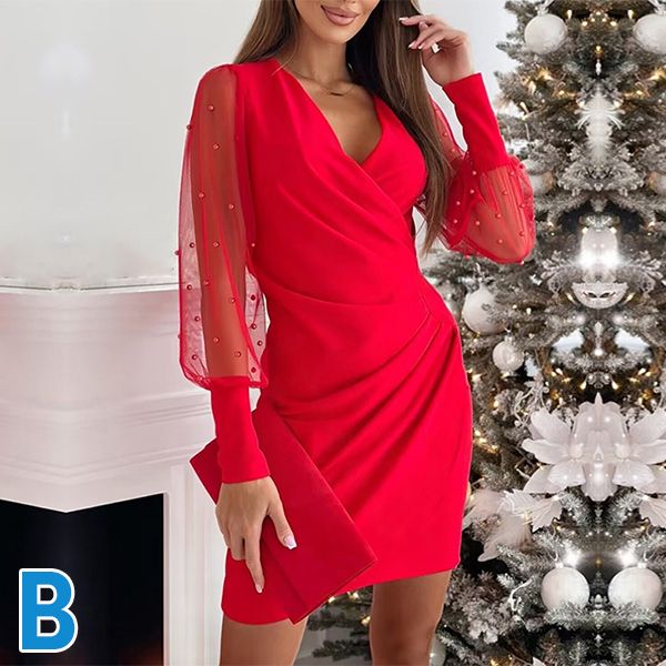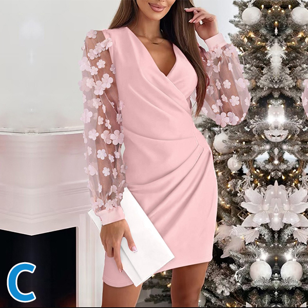 Fashion Gaze - Snyggt långärmad klänning med V-ringning och figuranpassad passform
