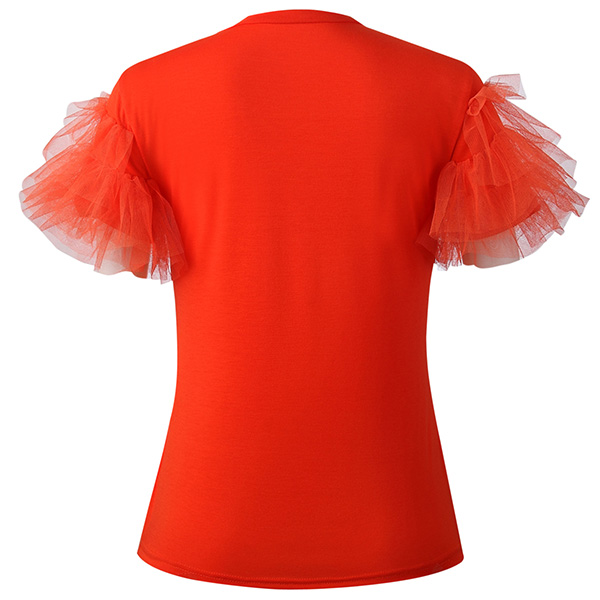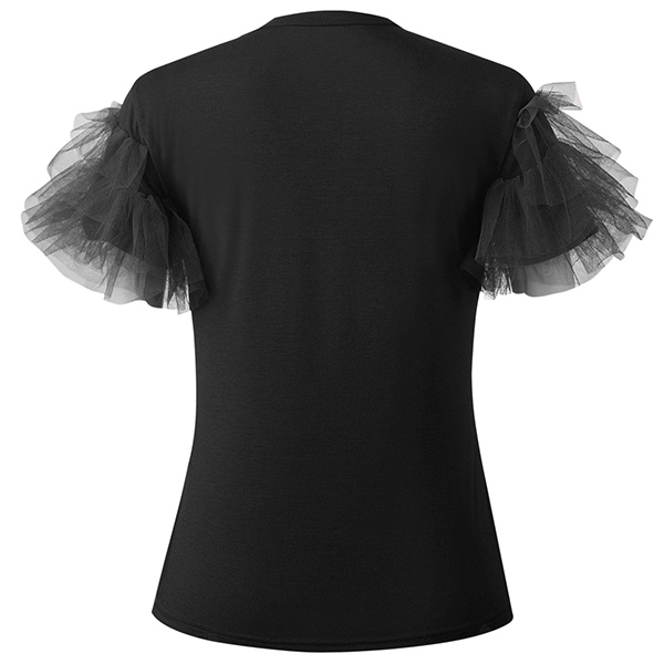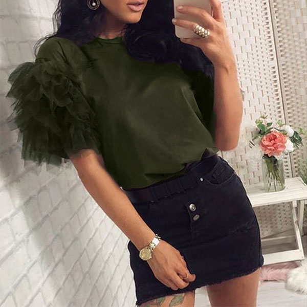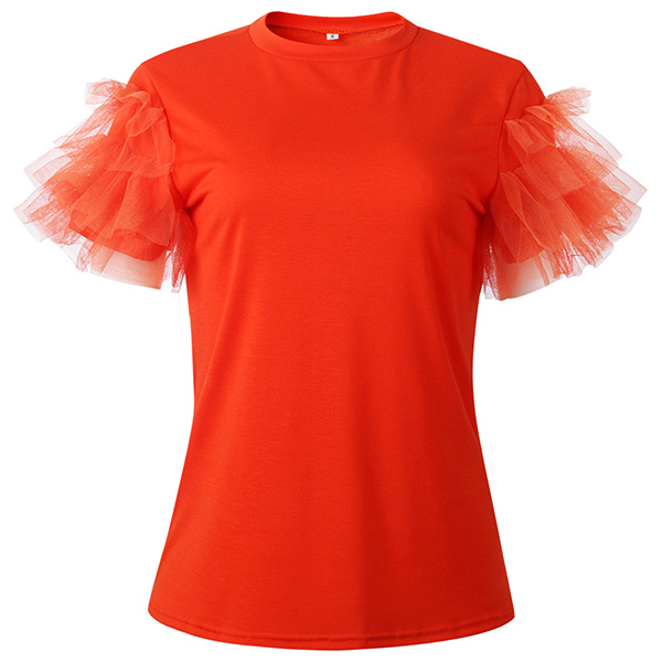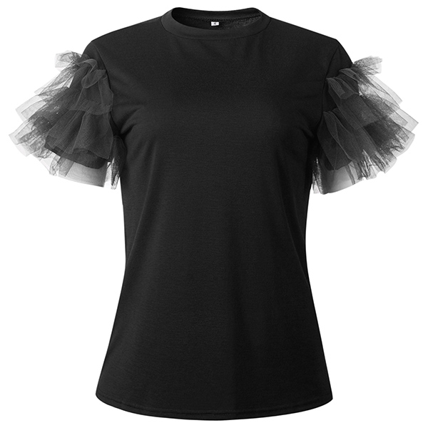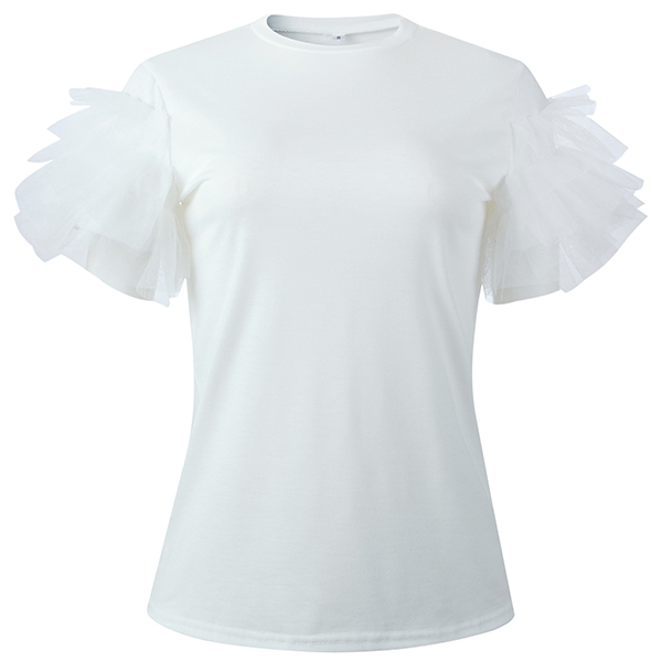 Fashion Gauze Spliced Short Sleeve Round Neck Solid Color T-shirt