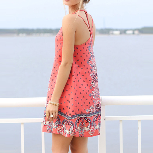 Fashion Graphic Print Strappy V-Neck A-Line Cami Dress