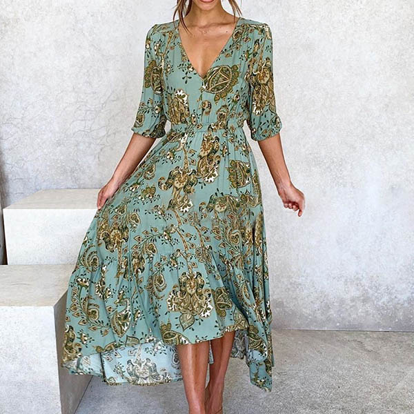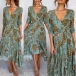 This dress that exudes stylish and feminine vibes is worth to be your timeless wardrobe staple. Features chic printed details,finished with half sleeve,v-neck and high waist design,this dress knows how to make you look beautiful. Add one to your wardrobe and it won't let you disappointed!