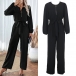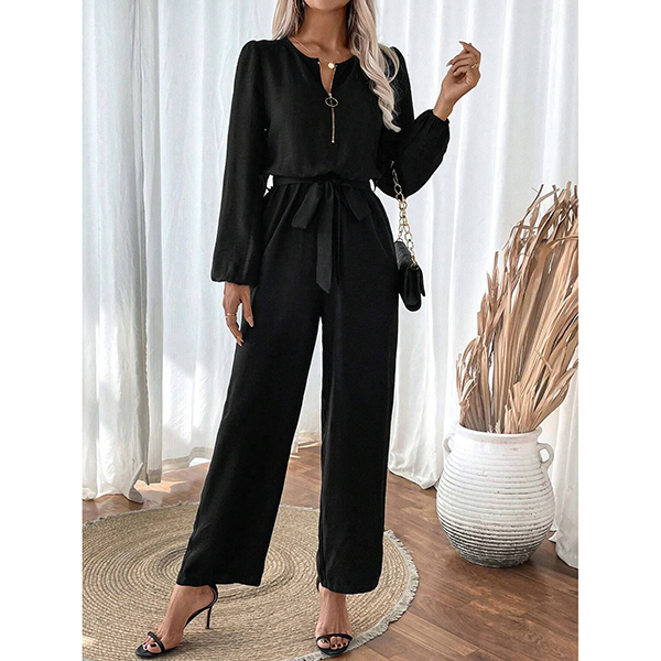 Damjumpsuit med långa ärmar och knytband – rak passform