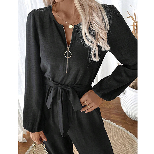 Förhöj din stil med denna eleganta och moderna jumpsuit. Den har en praktisk design med halvdragkedja och långa ärmar, vilket gör den perfekt för alla tillfällen. Vill du prova?
