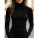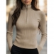 Trendig ribbad polotröja med halvpolo-dragkedja och långa ärmar
