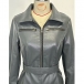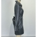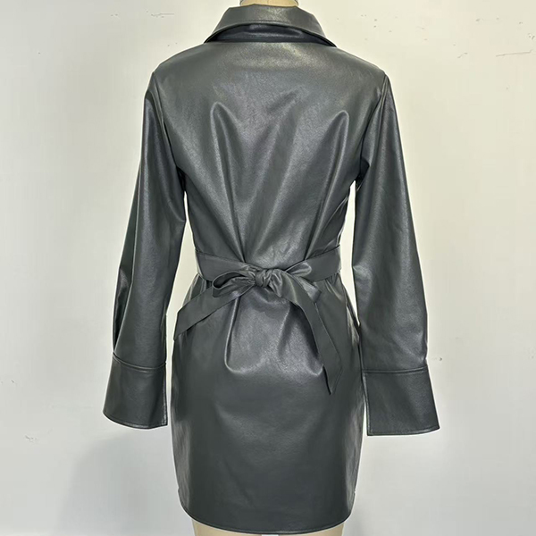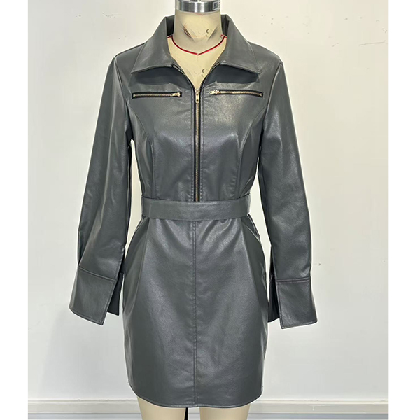 PU-konstläderklänning, figurnära med hög midja, lång ärm, ståkrage, V-ringning och halv dragkedja
