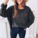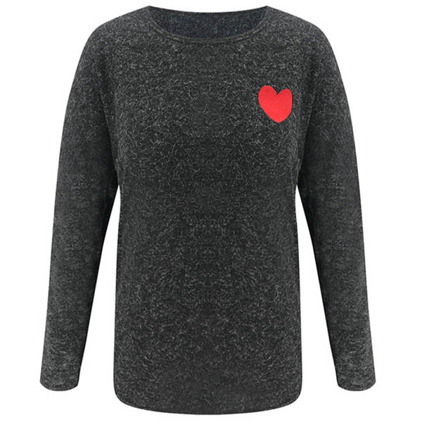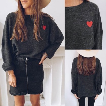 Fashion Heart Embroidery Long Sleeve Round Neck Loose Top