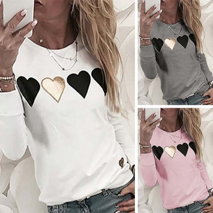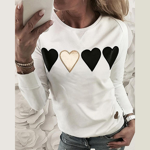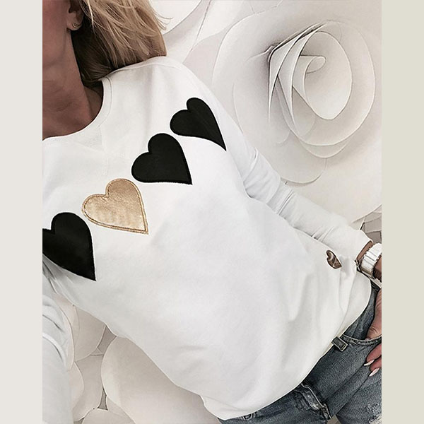 Fashion Heart Patched Long Sleeve Round Neck Top (It runs small)