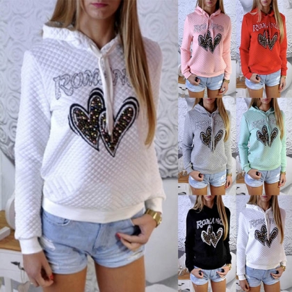Fashion Heart Pattern Long Sleeve Hooded Sweatshirt