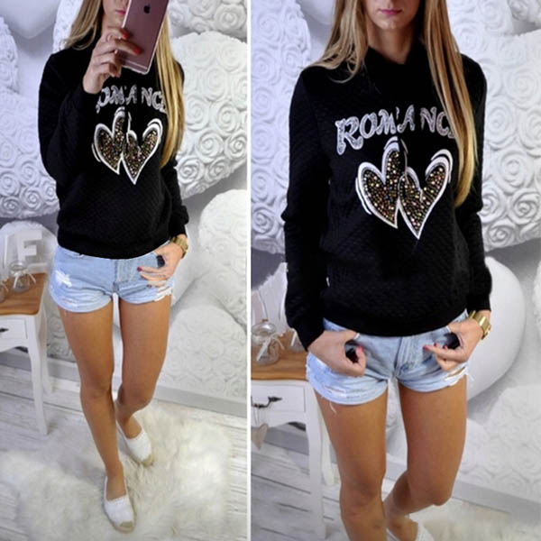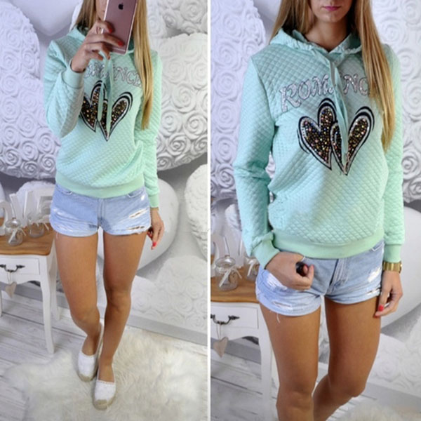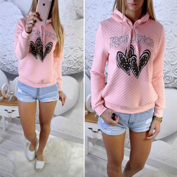 For these autumn days,this cozy yet stylish sweatshirt can easily strike your mind. It is finished with long sleeve and hooded silhouette,simple,classic,while the heart pattern design will boost its entire charm. All-match design allows to be matched with different style bottoms.
